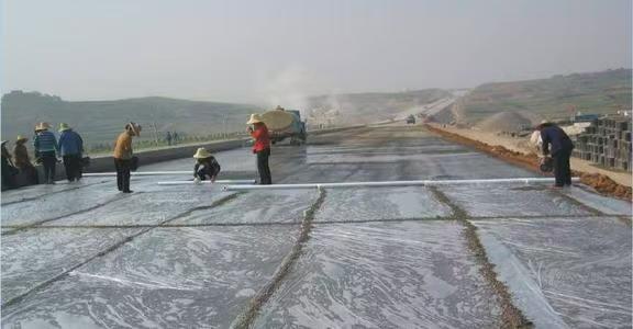 2、混凝土铺设保温材料时,若在0℃以上,应铺设1层;若在0℃以下,则应铺设2或3层。同时,保温材料不可直接覆盖在刚浇筑完毕的混凝土层上,应先覆盖一层塑料薄膜,再在上部覆盖草袋、麻袋等保温材料。